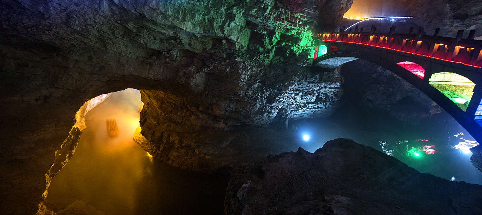 • 黃龍洞,一座形成于3.8億年前的大自然的迷宮,高闊的洞天,幽深的暗河,懸空的瀑布,密集的鐘乳石,匯聚成氣勢雄偉的洞穴大觀。目前,黃龍洞已探明的洞底總面積是10萬平方米,全長7.5公里,垂直高度140米,內(nèi)分兩層旱洞和兩層水洞。