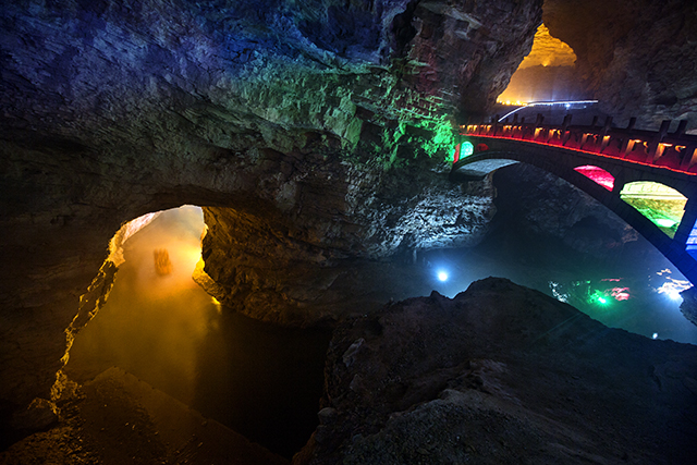 • 天仙橋:連接黃龍洞第二層和第三層的通道,也是目前國內(nèi)開發(fā)的溶洞中規(guī)模最大的一座石橋。